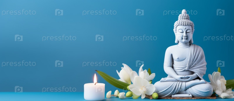 Медитация статуи Будды на синем фоне