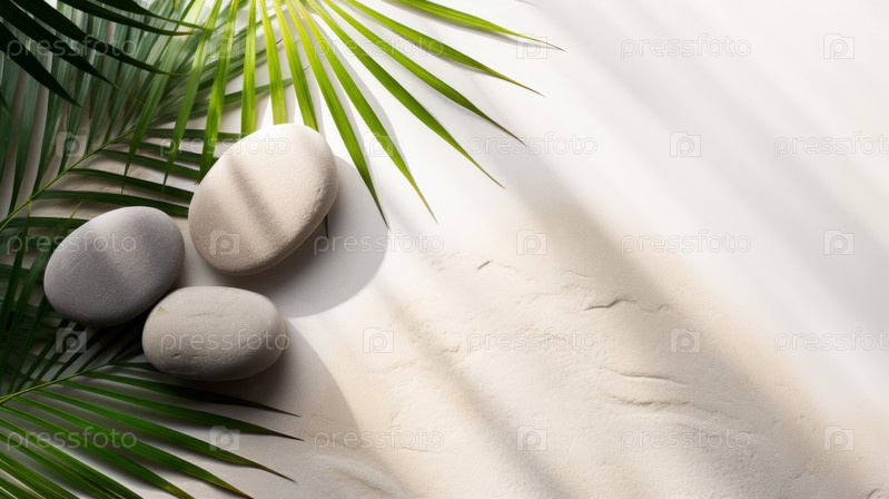 Пустой каменный постамент с зелеными листьями современный фон. Дизайн дисплея продукта, шаблон макета