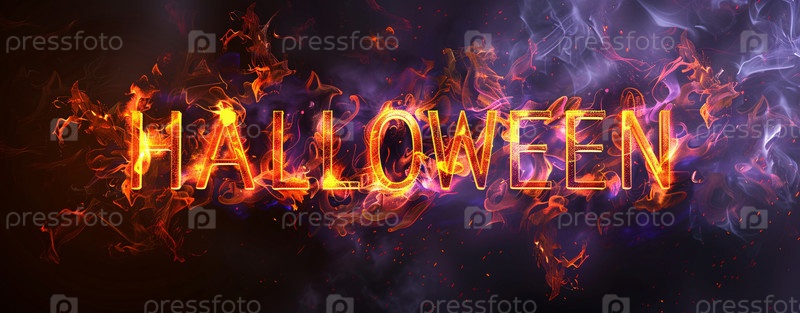 Огненный текст на Хэллоуин со светящимся пламенем и таинственным дымом