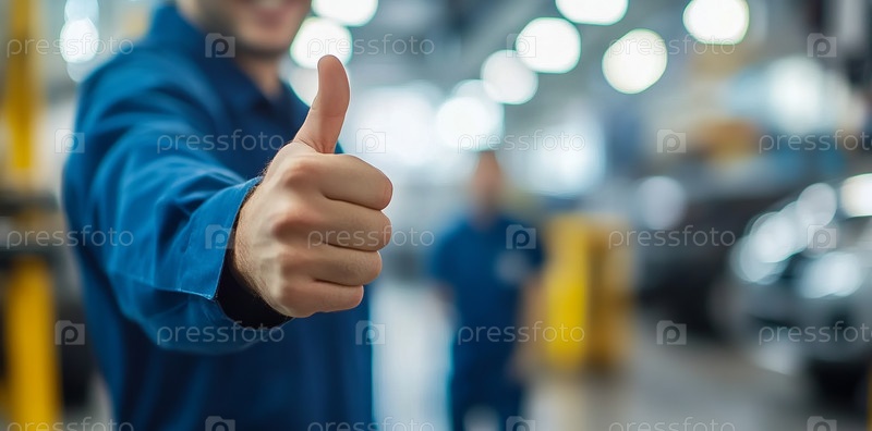 Жест поднятого вверх большого пальца в мастерской