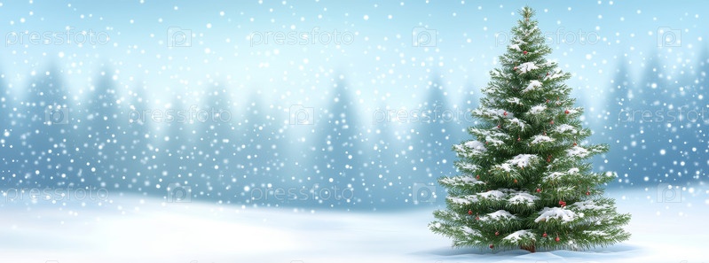 Красивая заснеженная рождественская елка в зимней стране чудес