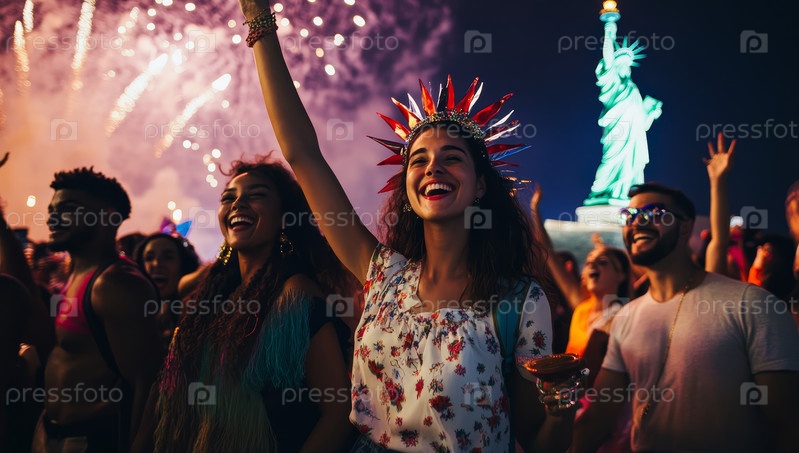 Радостное празднование Свободы с фейерверками и знаковыми достопримечательностями