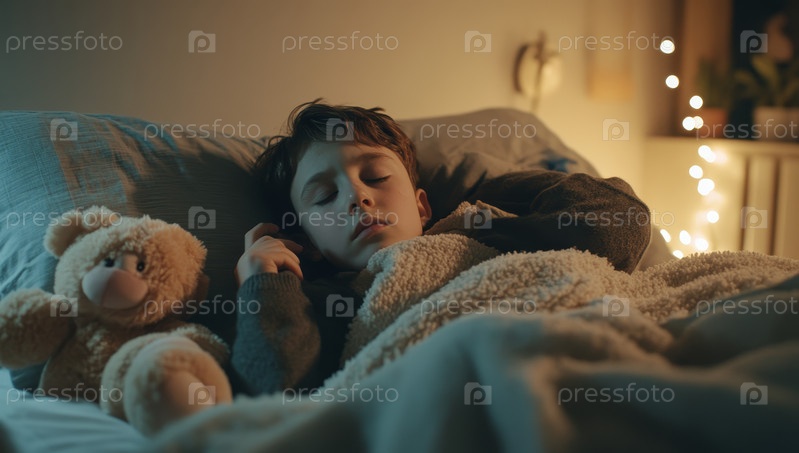 На этом изображении запечатлено тепло и уют детской комнаты перед сном, создающее спокойную и уютную атмосферу, идеально подходящую для спокойных ночей и сладких снов