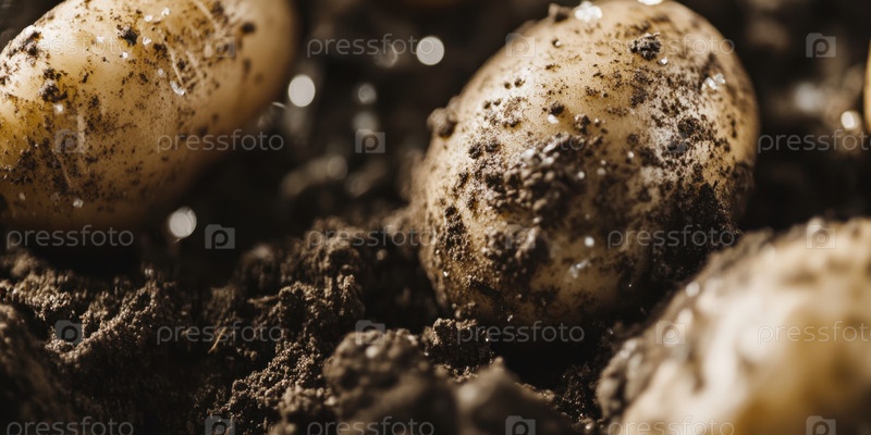 Свежеубранный органический картофель на плодородной почве