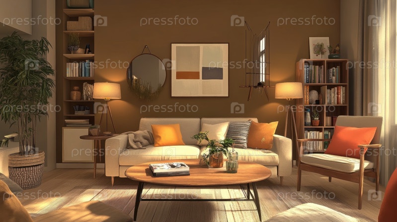 Уютный и стильный дизайн интерьера гостиной в теплых тонах
