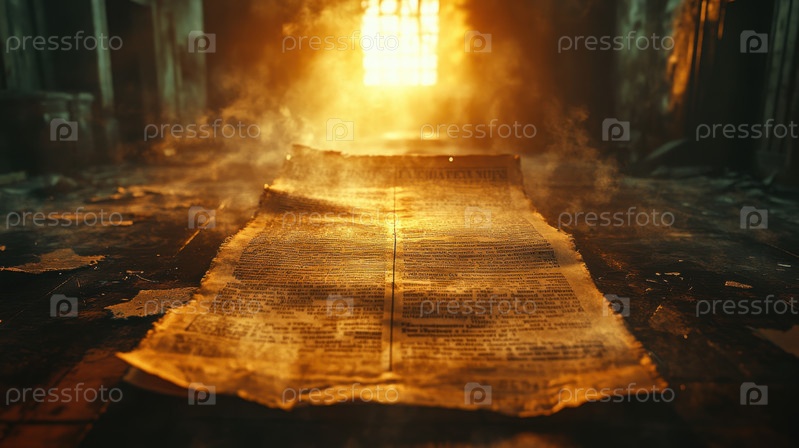 Древняя сожженная бумага в светящемся свете на деревянном столе