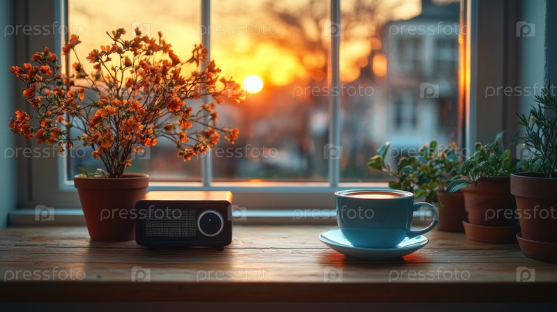 Старинный деревянный радиоприемник на уютном подоконнике