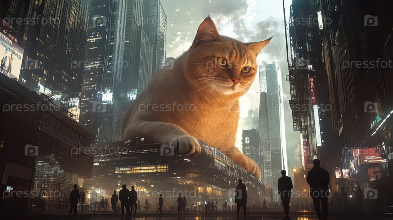 Гигантский кот в футуристическом городе