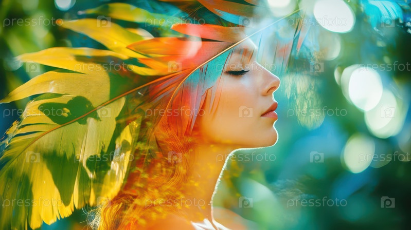 Портрет мечтательной женщины, смешанный с океанскими волнами в двойной экспозиции