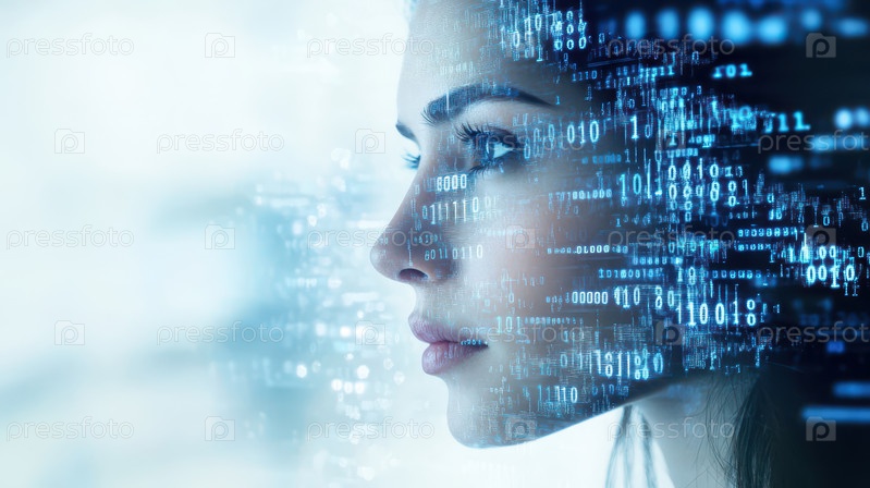 Лицо женщины с цифровым бинарным наложением