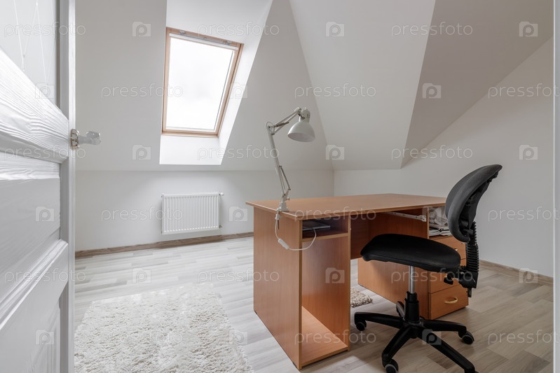 Минималистичный домашний офис с мансардным окном