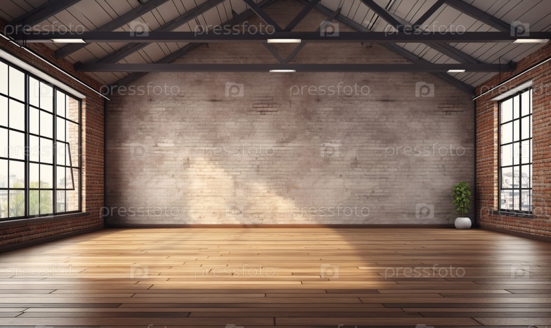 Интерьер комнаты с незаконченным ремонтом, кирпичной стеной и окном