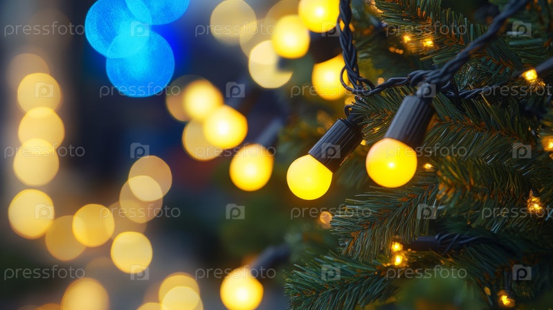 На снимке запечатлены разноцветные лампочки, ярко светящиеся среди праздничных украшений, создающие праздничную и яркую атмосферу