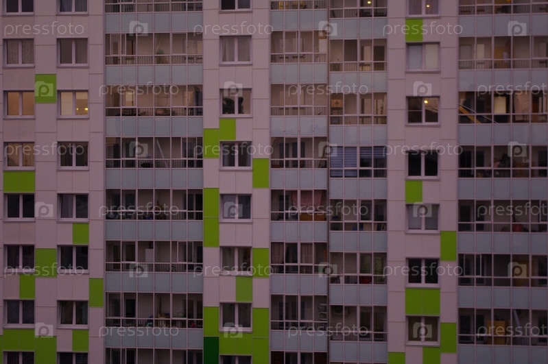 Окна многоквартирного дома. Фасад. Балконы