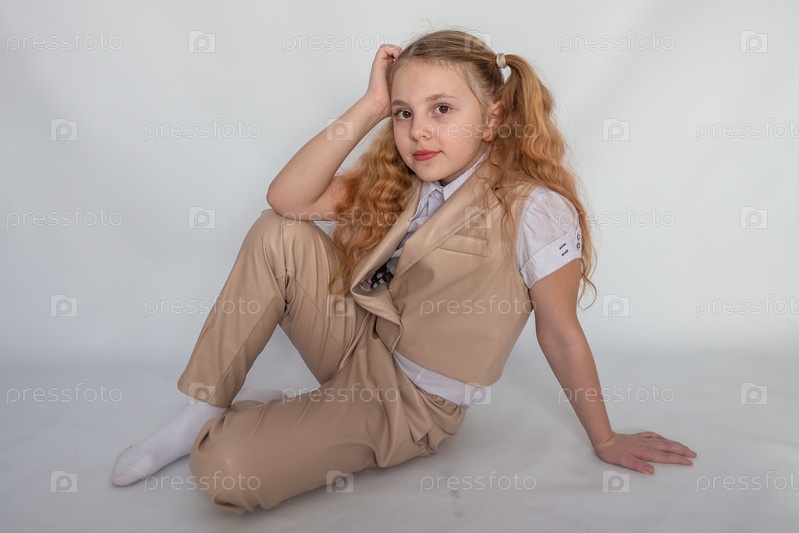 Портрет. Девочка модель в модном кожаном костюме. 2025 год. Portrait. The girl is a model in a fashionable leather suit. 2025