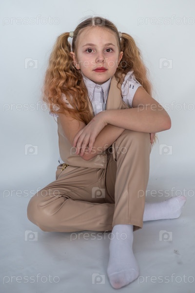Портрет. Девочка модель в модном кожаном костюме. 2025 год. Portrait. The girl is a model in a fashionable leather suit. 2025