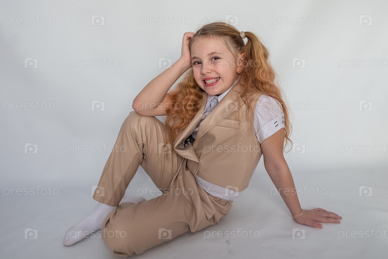 Портрет. Девочка модель в модном кожаном костюме. 2025 год. Portrait. The girl is a model in a fashionable leather suit. 2025