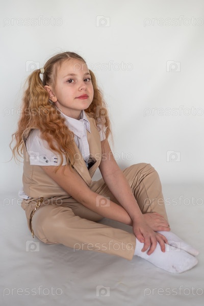 Портрет. Девочка модель в модном кожаном костюме. 2025 год. Portrait. The girl is a model in a fashionable leather suit. 2025