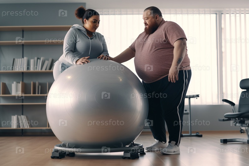 Партнеры по фитнесу занимаются с гимнастическим мячом в спортзале
