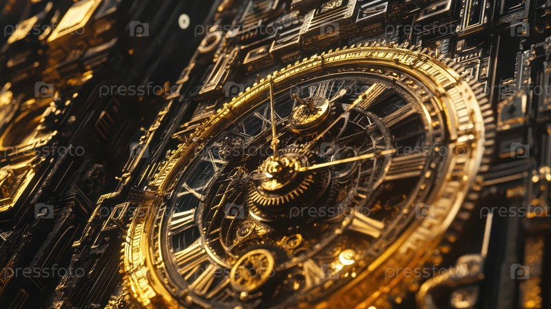 Сложный золотой часовой механизм