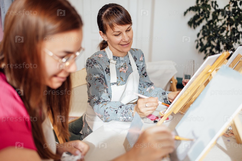 Крупный план молодых женщин в повседневной одежде на занятиях по живописи