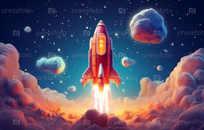 Фэнтезийная космическая ракета летит в космосе к неизведанным звездам и галактикам, научная фантастика и астрономическая концепция
