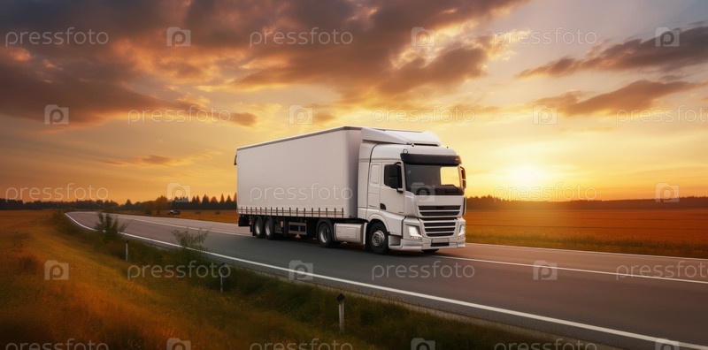 Обгон грузовиков на асфальтированной дороге в сельской местности на закате