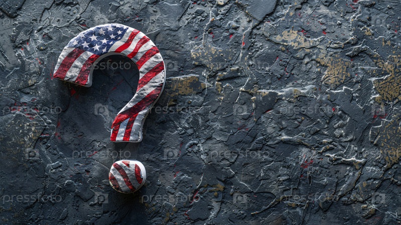 Выветренный американский флаг с вопросительным знаком на деревенской металлической поверхности