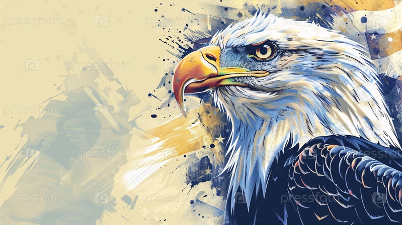 Белоголовый орлан на фоне флага США