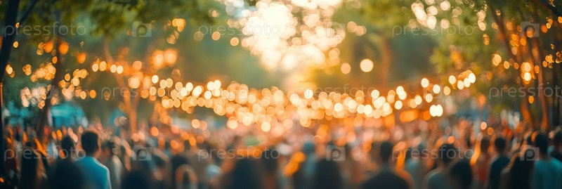 Оживленный ночной фестиваль с красочными огнями и радостной толпой, наслаждающейся празднованием на открытом воздухе