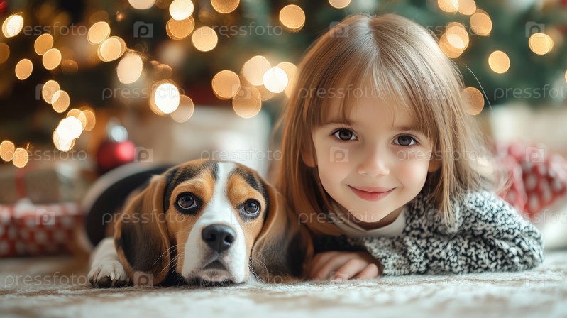 Теплая и уютная сцена передает дух праздника с помощью светящихся рождественских огней и красиво упакованных подарков под елкой