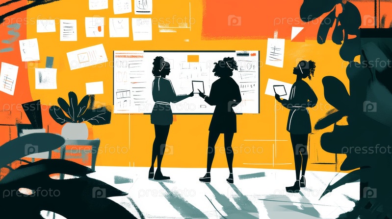 Сессия мозгового штурма творческой команды с использованием заметок в современном офисе