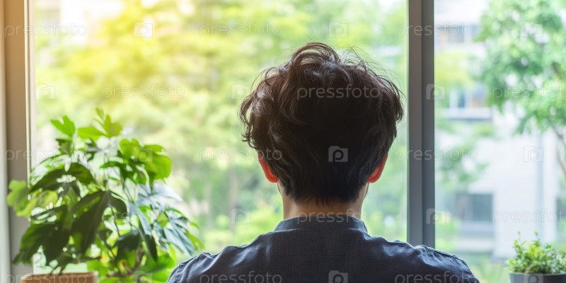 Безмятежное созерцание: человек, наслаждающийся спокойствием природы через окно