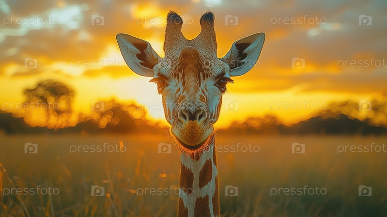 Портрет жирафа крупным планом на закате
