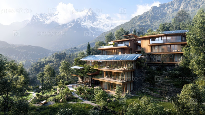 Роскошный экологически чистый горный дом с солнечными панелями и панорамным видом
