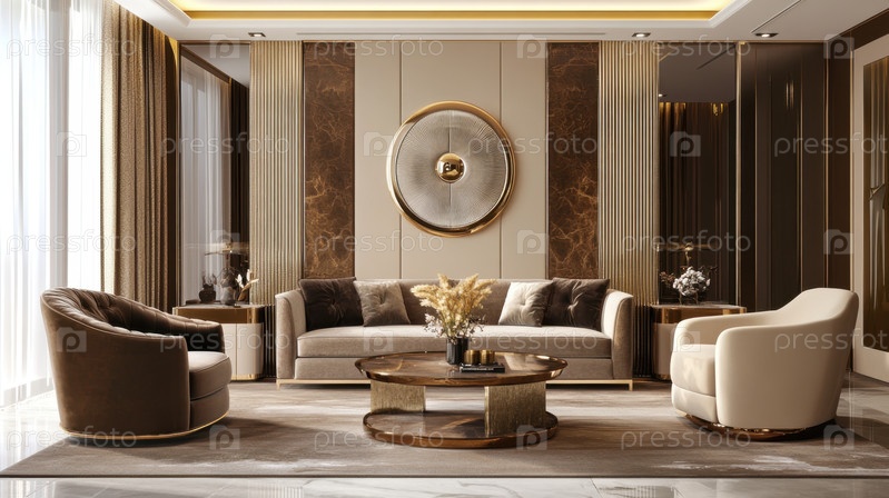 Роскошный современный интерьер с гламурными декоративными элементами