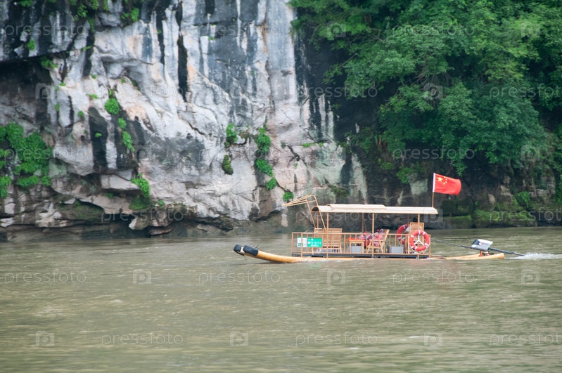 Лодка бамбу сплавляется по реке Ли