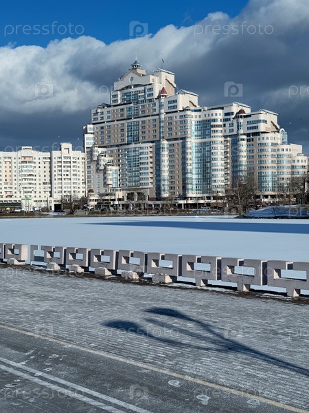 МИНСК, БЕЛАРУСЬ, 20 ФЕВРАЛЯ 2025 г. Набережная реки Свислочь в районе Немиги зимой