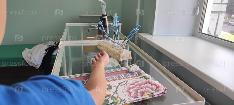 В медицинском кабинете проверка на аллергены. Аллергия. Allergen testing is carried out in the medical office. Allergy