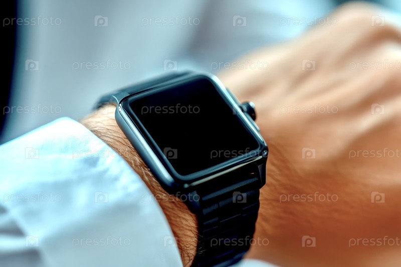 Крупный план умных часов на руке бизнесмена