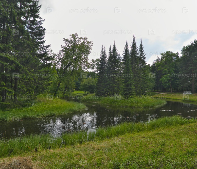 Екатерининский парк в Царском селе (Пушкин, Санкт-Петербург), вид на Лебяжьи пруды