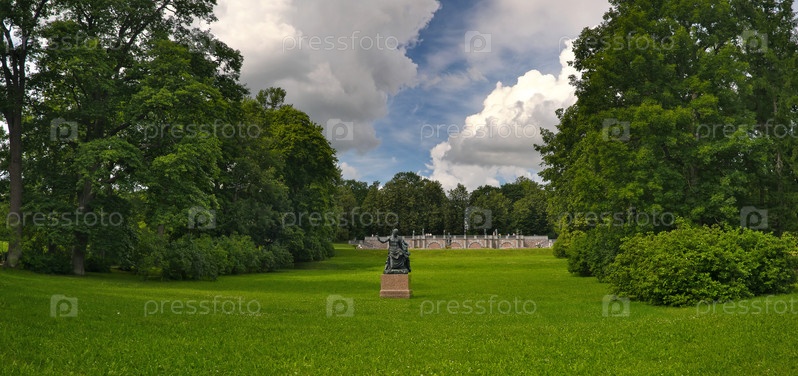 Екатерининский парк в Царском Селе (Пушкин, Санкт-Петербург), вид на бронзовую статую императора Нервы и Гранитную террасу