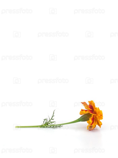 Один натуральный красный цветок бархатцев, изолированный на белом фоне