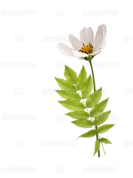 Цветущий цветок космеи и лист , изолированный на белом фоне