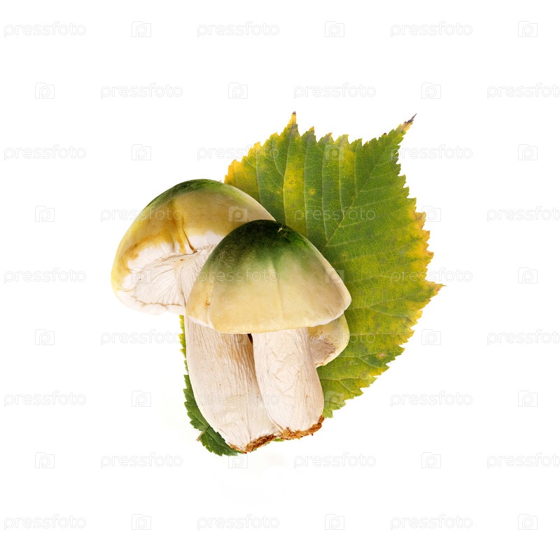 Зеленый и желтый осенний лист на изолированном белом фоне