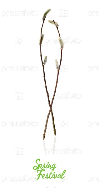 Ветка растения с почками и маленькими листьями, изолированная на белом фоне