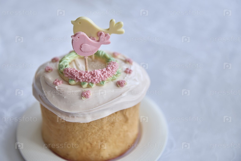 Великолепное весеннее счастье излучается этим прекрасно испеченным пасхальным куличом «Кульчичи», украшенным нежной птичкой и цветочной глазурью, вызывая ассоциации с традициями и обновлением