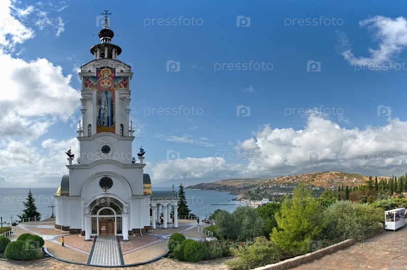 Малореченское, Россия. 03 октября 2024 года. Архитектура православного Храма=маяка Святителя Николая с Мемориалом всем погибшим на водах