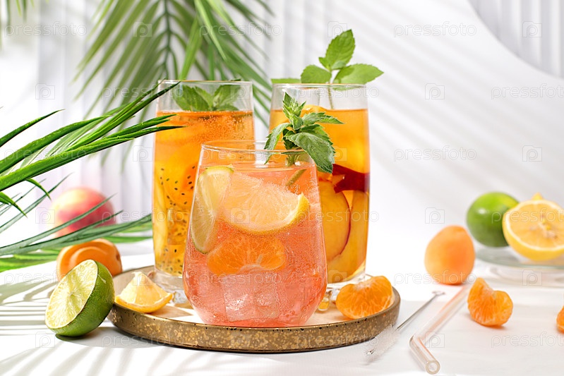 Летняя вечеринка и рекламный баннер здорового образа жизни, диетический веганский коктейль с семенами чиа, лаймом, лимоном, мятой и абрикосами. Детокс-диета и концепция потери веса, Меню для кафе и ресторана