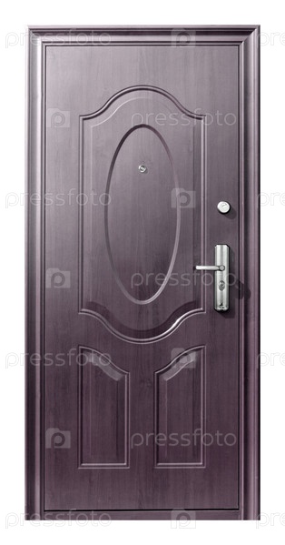 Модель входной металлической двери, изолированная на белом фоне